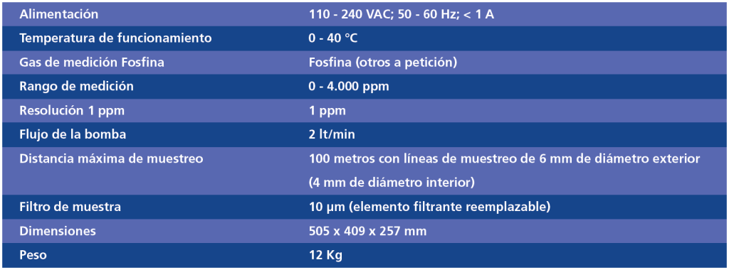 El monitoreo de la concentración de fosfina es una necesidad hoy en día para asegurar la eficacia de la fumigación y también para prevenir el desarrollo de la resistencia de los insectos.