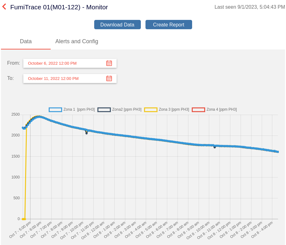 El monitoreo continuo de la concentración de fosfina se convierte en una herramienta importante para comprender mejor la dinámica de la concentración de gas, evaluar las estrategias para la mejora continua y también proporciona la trazabilidad del proceso de fumigación.